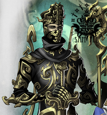 「魔剣 ティルヴィング」 …キャラはクリストファ。 「剣のルーン テュール」に続き2枚目です。 ルーン文字が刻まれた剣とのことで、ケルトの紐帯文様をちょっと参考にした意匠にしてみました。 様式をもっとスムーズに取り入れられる器用さが欲しいぞう。