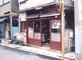 写真中・大通りから少し入った中にある三浦さんのお店。中は鎧と工具がぎっしり。時折、会釈するご近所さんと物珍しそうに工房の中を覗く人が横切る。